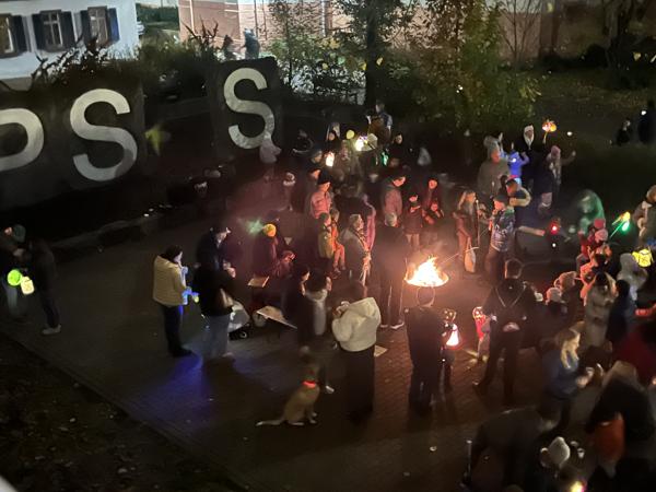 Das Ende des Martinsumzugs der katholischen Kirche war wieder im kleinen Schulhof der PSS. Dort warteten Punsch, Glühwein und eine Feuerschale auf die Gäste. Weitere Impressionen und ausführlichere Infos gibt es hier.
