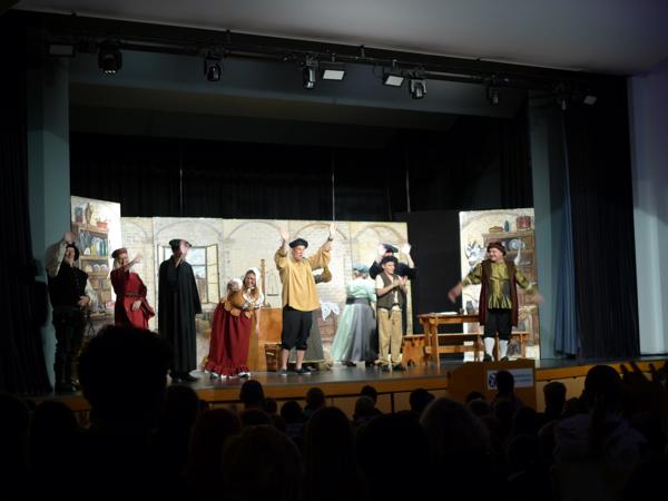 Das Ensembel des Projekttheaters Peter Schöffer führte am Dienstag, den 21. Oktober 2025, erneut den ersten Akt ihres Stücks "Peter Schöffer - Der Gernsheimer, der half die Welt zu verändern" in der Stadthalle auf.