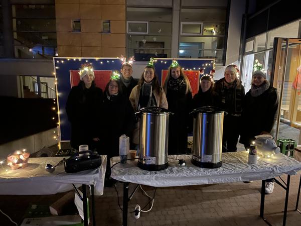 Am Donnerstag selbst traf sich das Orgateam vorab und baute die Verpflegungsstation sowie die Technik für die Auftrittsfläche auf. Neben jeder Menge Lichterketten wurden auch die selbst gebastelten Getränkeschilder aufgehängt, die Warmhaltebehälter gefüllt und die Plätzchenteller gerichtet.